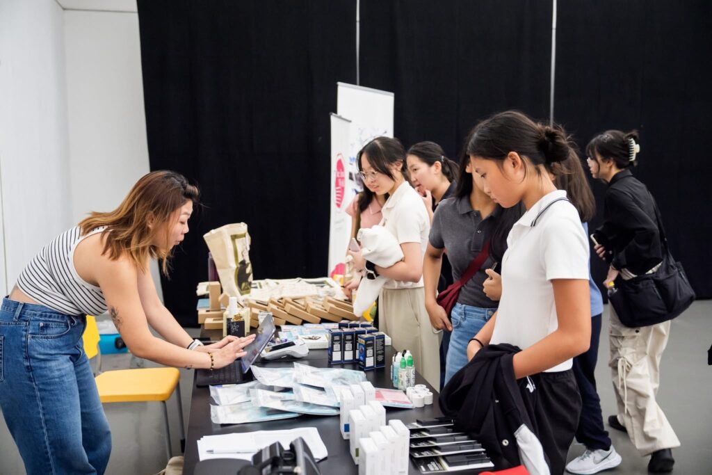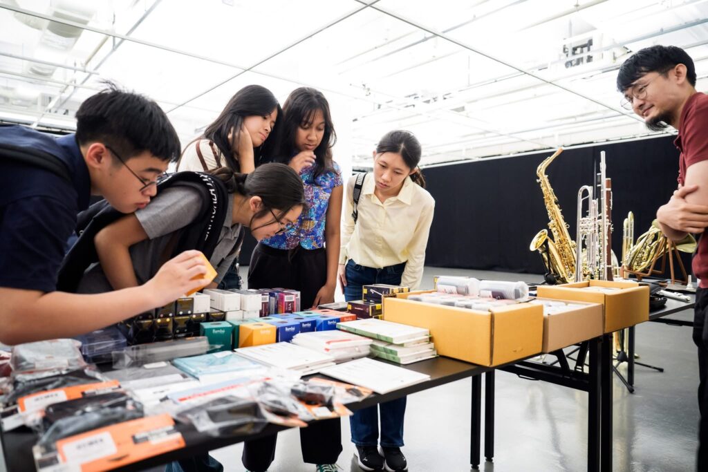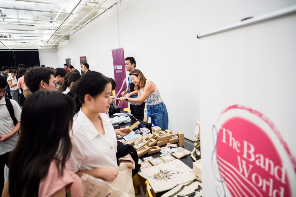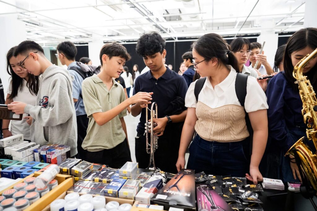 At the School of the Arts Concert Hall, exhibition booths were set up in the adjacent gallery space, allowing participants and visitors to explore freely. Musical instruments and related accessories were showcased, drawing considerable interest and activity.